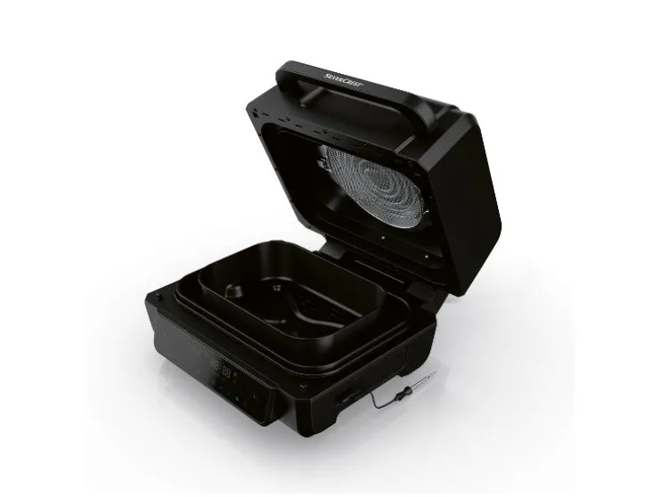 | Leveringsomvang: | 1x heteluchtfriteuse, 1x grillplaat, 1x plancha/kookpan, 1x heteluchtfriteusemand, 1x digitale braadthermometer (voorgemonteerd), 1x spatbescherming (voorgemonteerd), incl. gebruiksaanwijzing met 5 receptideeën |