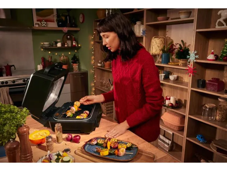 - Met gesloten deksel te gebruiken als heteluchtfriteuse en met open deksel als grill