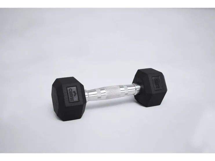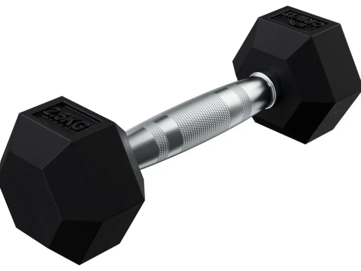- De zeshoekige vorm voorkomt het wegrollen van de halter en maakt een hogere trainingsvariatie mogelijk