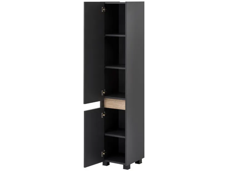Geef je badkamer een moderne uitstraling met deze hoge kast. Ideaal voor extra opbergruimte en eenvoudig te monteren.