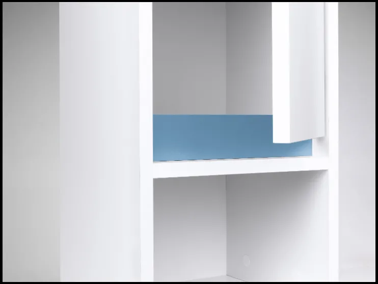 - Tweekleurige verwisselbare fronten naar keuze: wit-eikenlook of antraciet-blauw