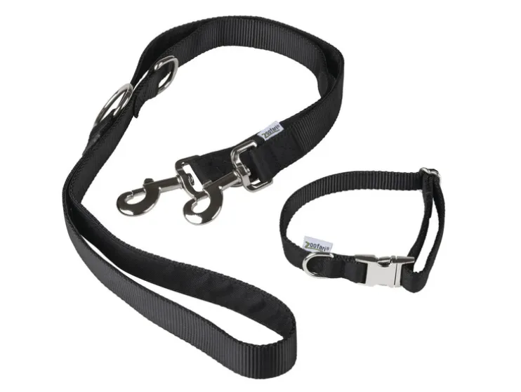 - In lengte verstelbare hondenriem met karabijnhaak, met draaigewricht en drie D-ringen