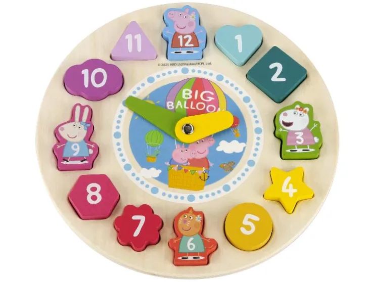 | Motief: | Speelklok-puzzel: Cijfers Steekpuzzel: Peppa Pig Dobbelpuzzel: Peppa Pig, 6 verschillende motieven Legpuzzel: Peppa Pig |
