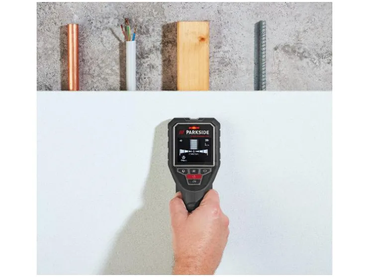 - Detectie van magnetisch en niet-magnetisch metaal, stroomvoerende leidingen en houten onderconstructies in gipsplaten