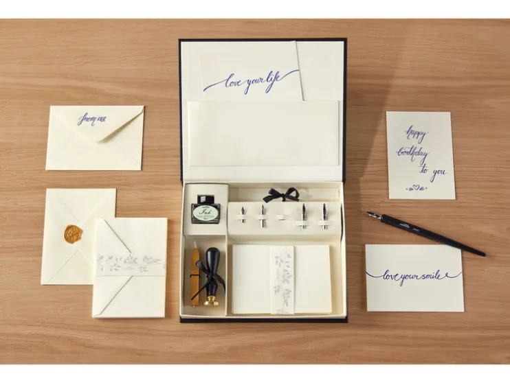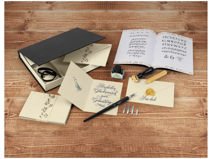 Inclusief: inkt, penhouder, pennen, kaarten, stempel en meer