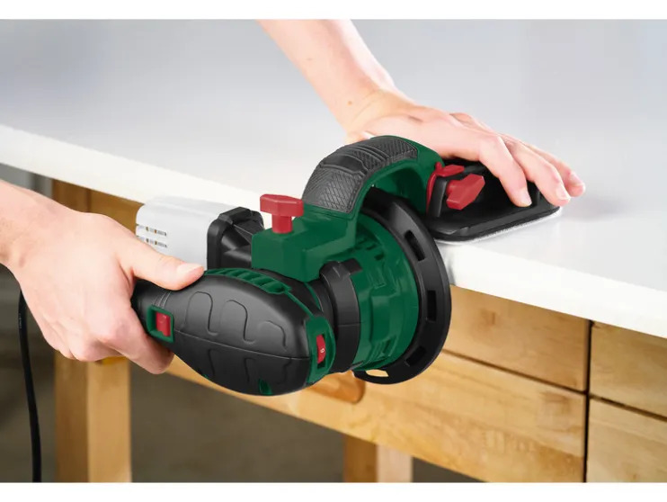 - Voor nauwkeurig en veilig schuren van ruwe, gezaagde of bewerkte houten randen en gelakt hout
