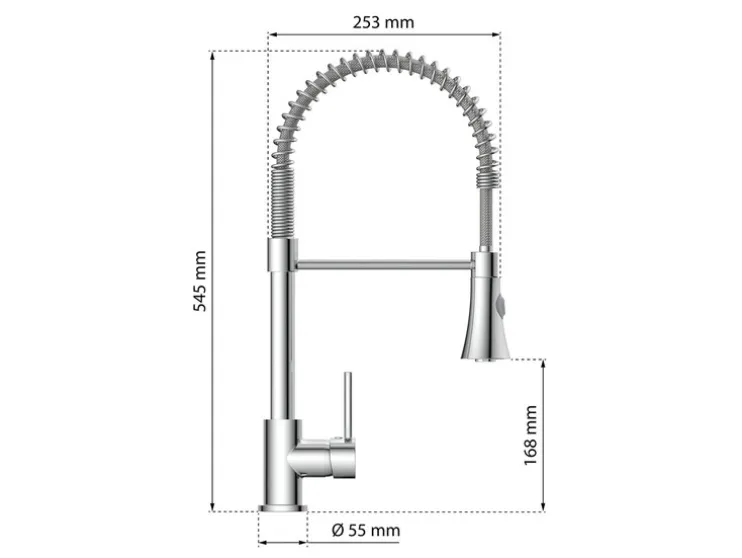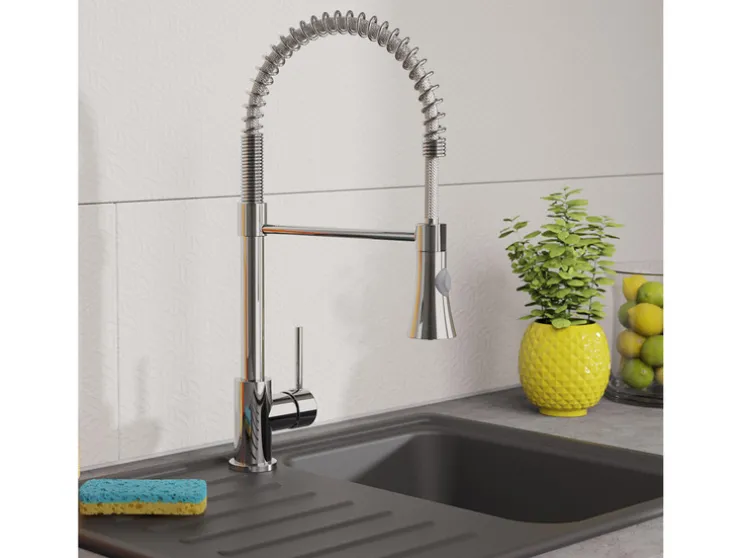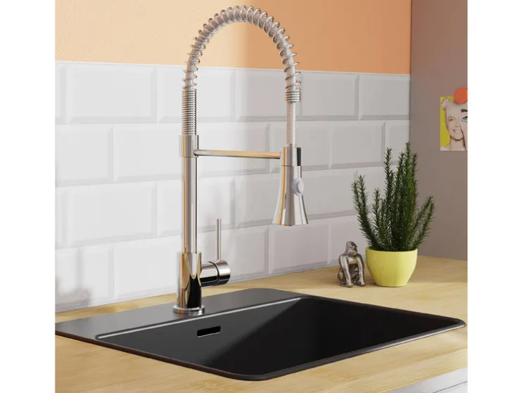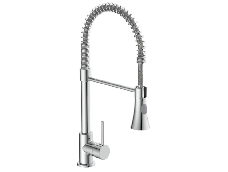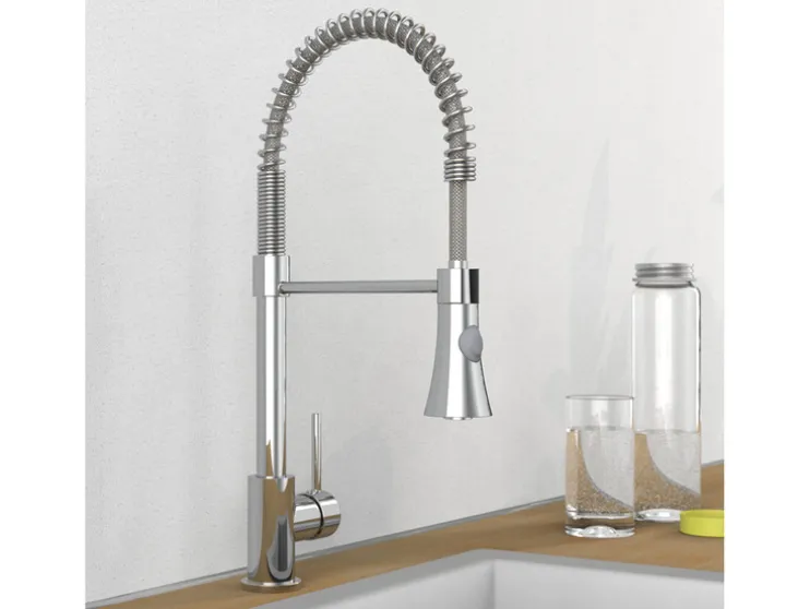 - Hoogwaardige kraan voor de keuken met roestvrijstalen spiraalveeruitloop