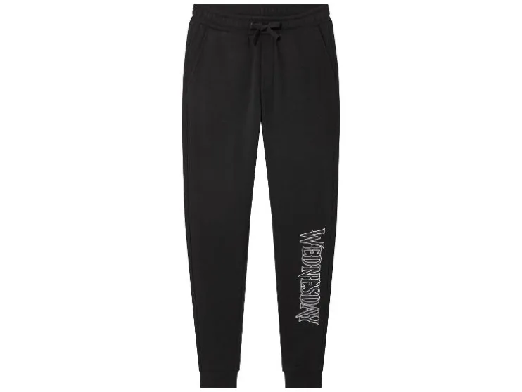 | Detail: | met Wednesday-print, zachte sweat kwaliteit met opgeruwde binnenkant, met elastische tailleband, trekkoord, zakken en achterzak |