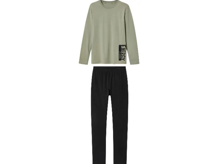 - Shirt met ronde hals, broek met elastische tailleband