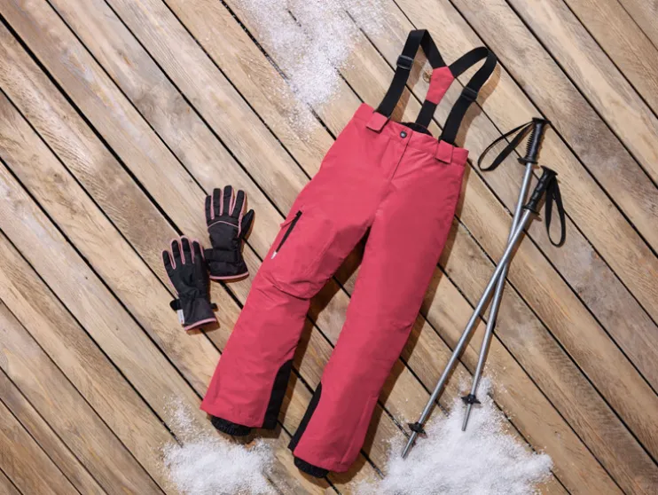 - Met praktische sneeuwbescherming, antislipelastiek en ritssluiting op uiteinde van de pijp