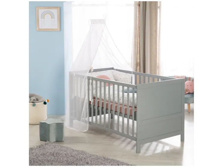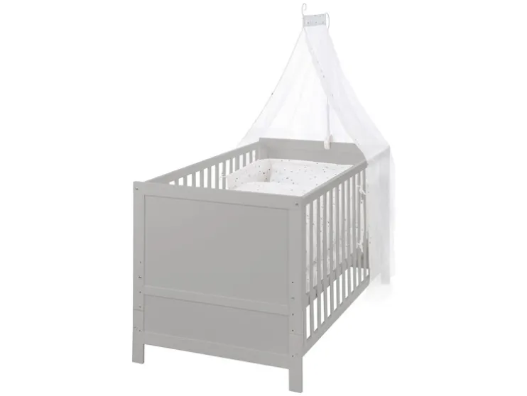 Zoek je een bed dat alles in één biedt? Het roba kinderbed ‘Sterrenmagie’ is een complete set met bed, matras, beddengoed, hemel en hemelstang. Perfect voor een comfortabele en stijlvolle start.