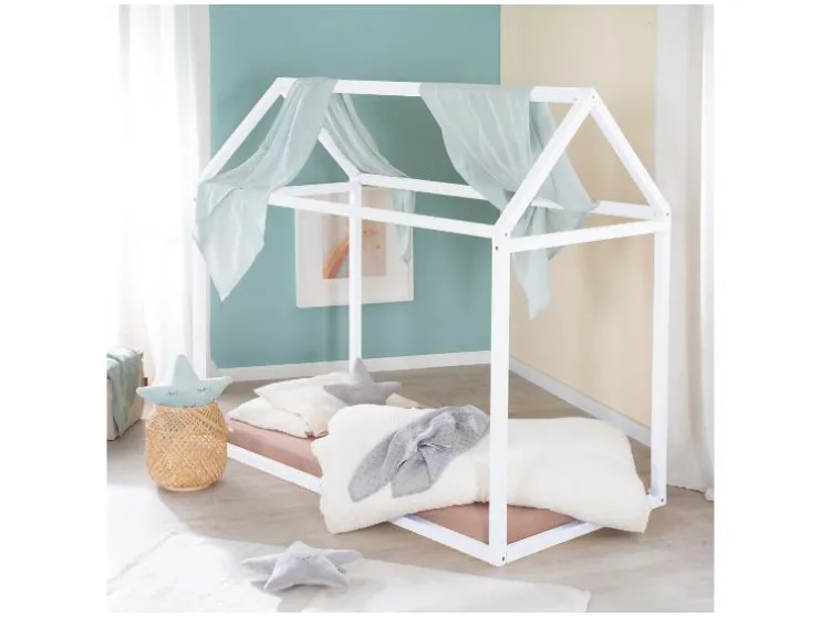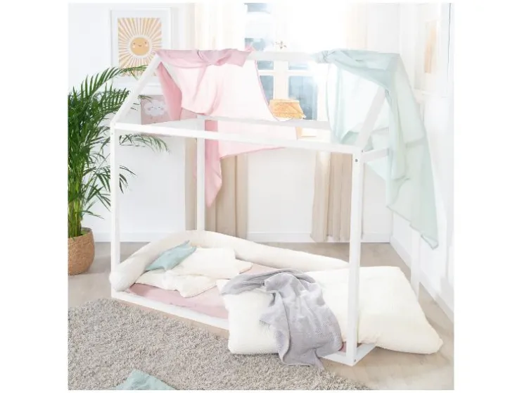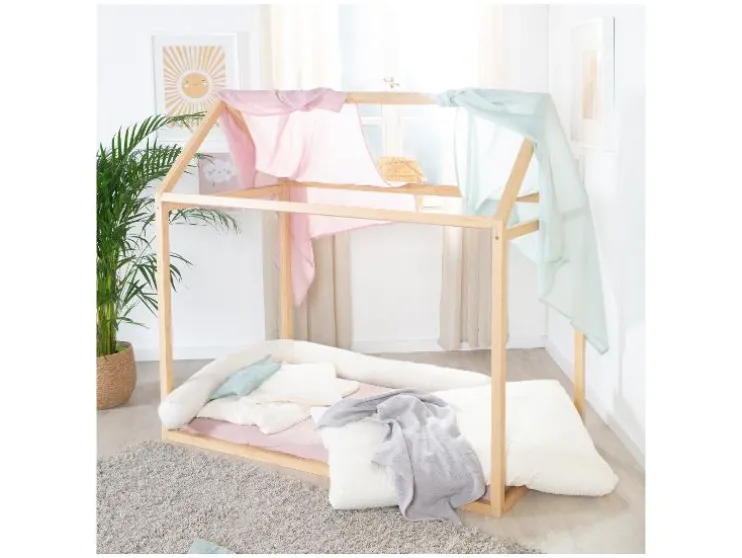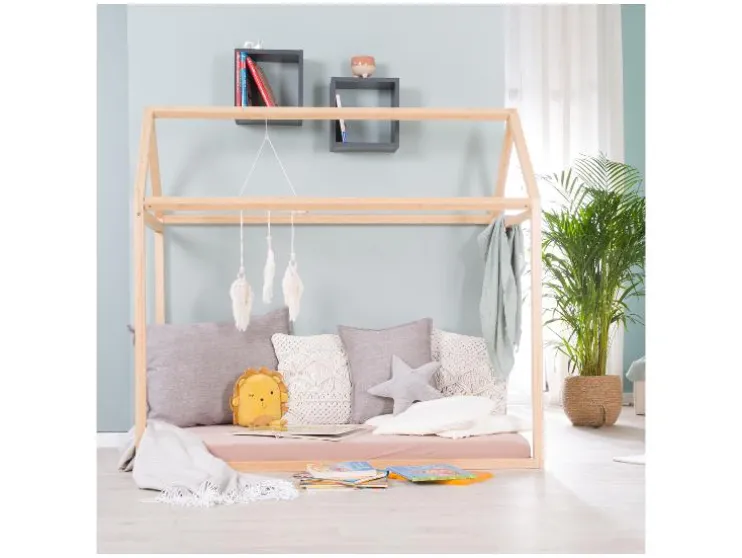 Een speels kinderbed op vloerniveau dat kinderen helpt zelfstandig te worden. Het roba Montessori huisbed is een veilige en inspirerende plek om te slapen én te spelen.