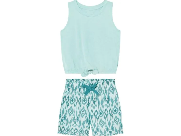 | Detail: | Top met ronde hals en strikknoop aan de zoom, shorts met paperbag-tailleband, sier strik en ruches aan de beenafwerking |