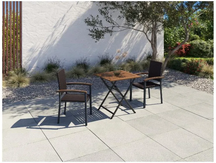 | Materiaal: | Tafelblad: geïmpregneerd hardhout, Frame: Aluminium |