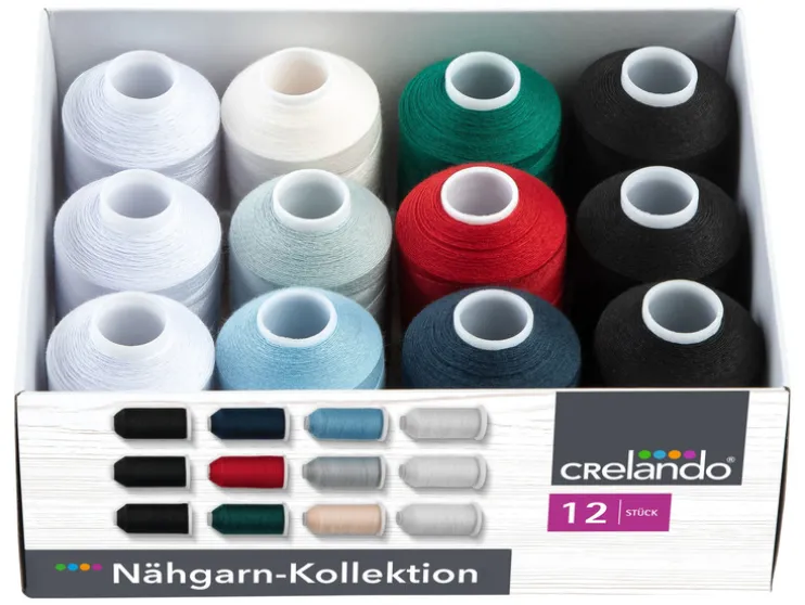 - 12 klossen à 1.000 m driedraads garen (garendikte Ne 60/3)