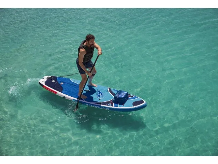 - Eenvoudige bevestiging aan het SUP-board dankzij elastische spanbanden en karabijnhaken
