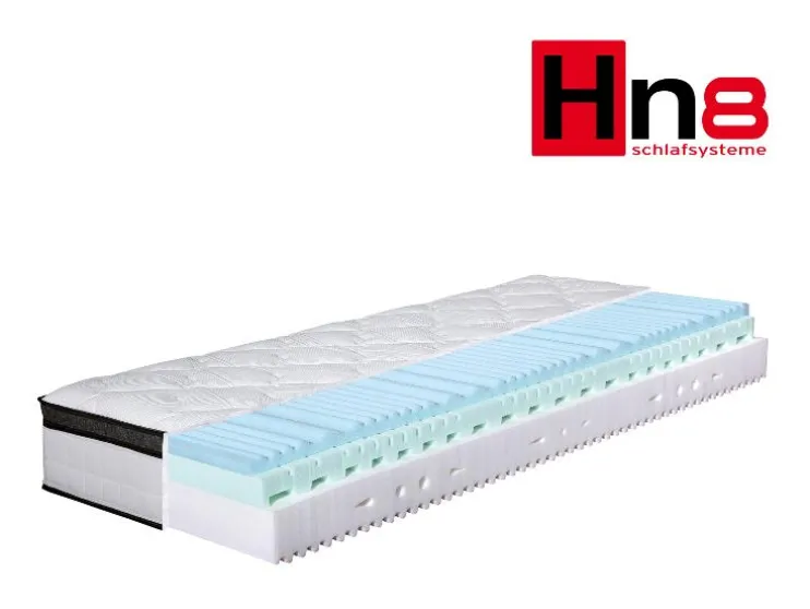 20 cm hoge 7-zone Waterpur40 koudschuimkern met innovatieve sandwichkerntechniek + eenzijdig geïntegreerde, 4 cm hoge 7-zone gelschuimtopper in golfsnijtechniek.