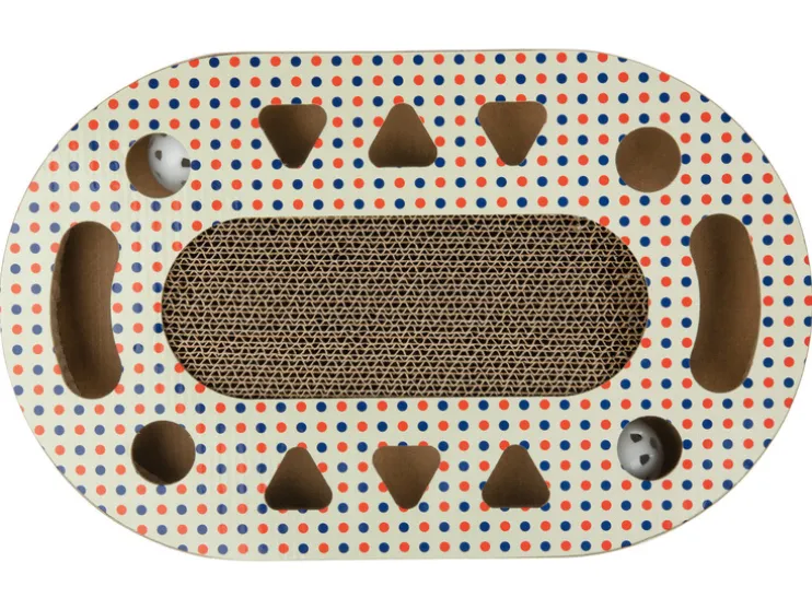- Krabkarton met één baan waarin een speelbal is geïntegreerd.