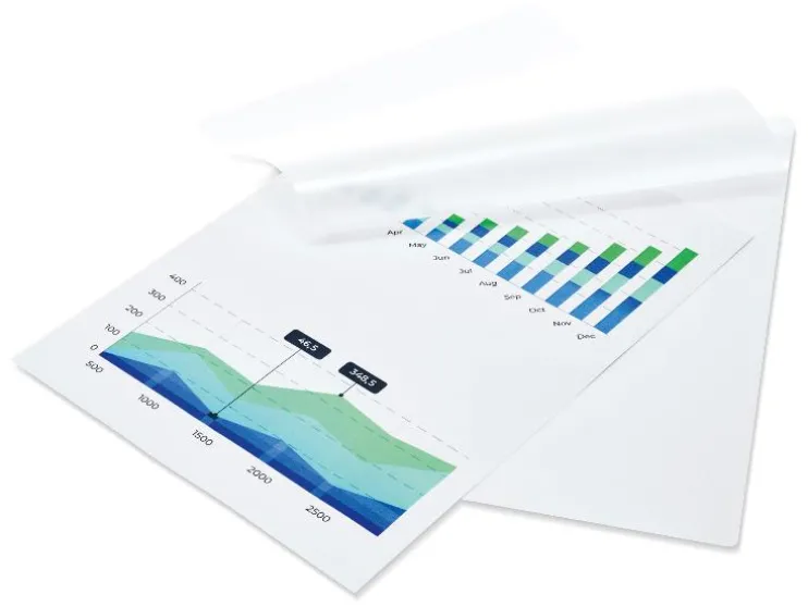 - Lamineringsdikte warm: 80 of 125 micron; koud: max. 200 micron