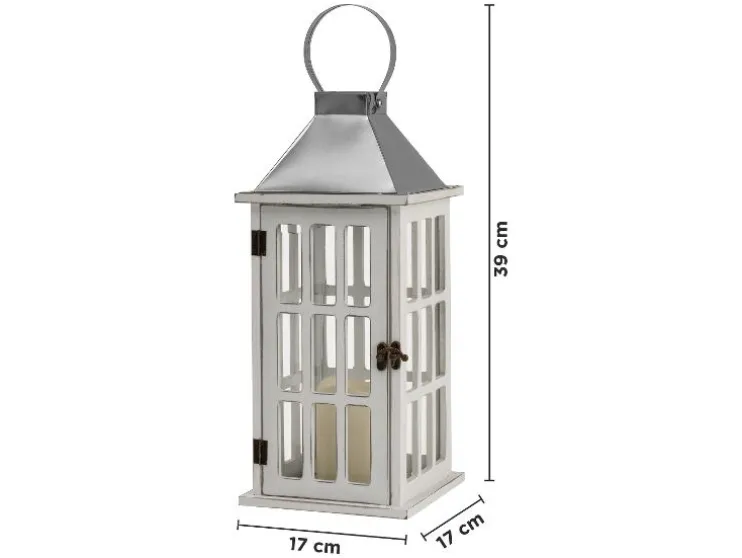 | Materiaal: | Behuizing: grenen (FSC), MDF (FSC); Lantaarndak: plaatstaal; Glasplaat: glas |