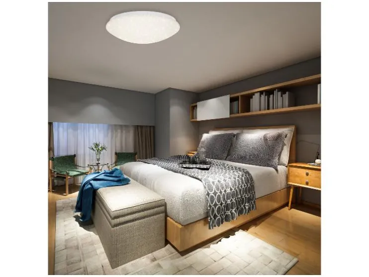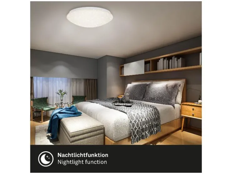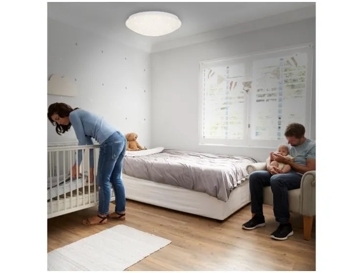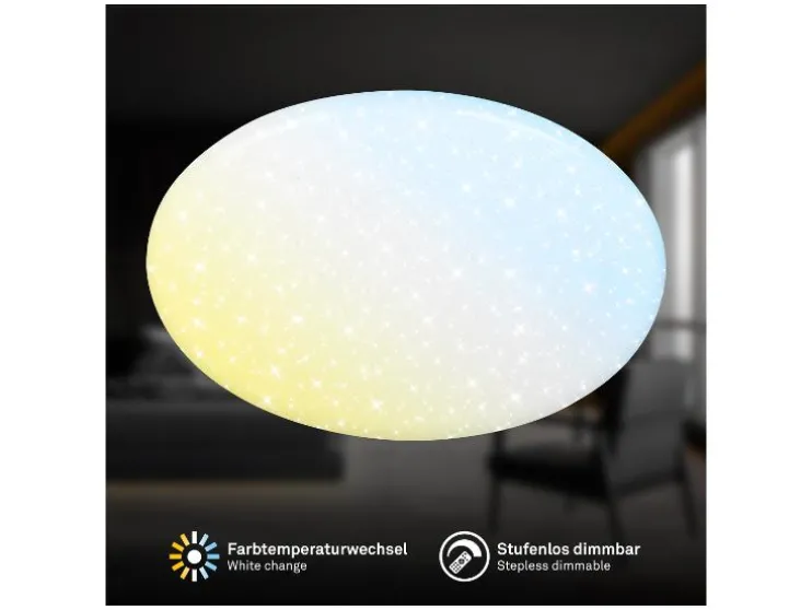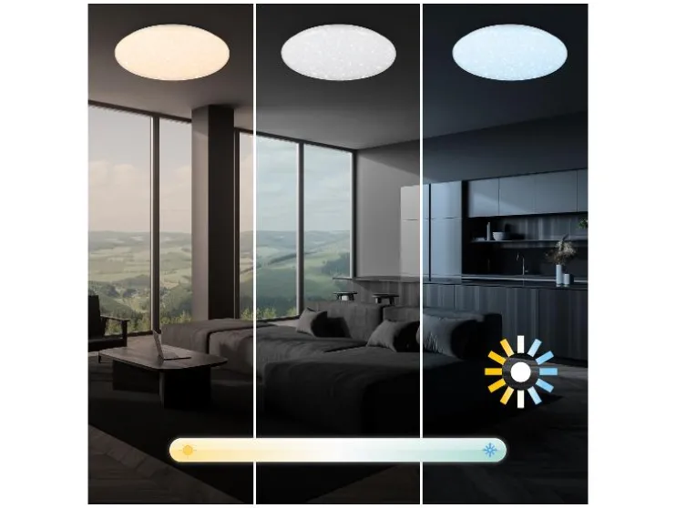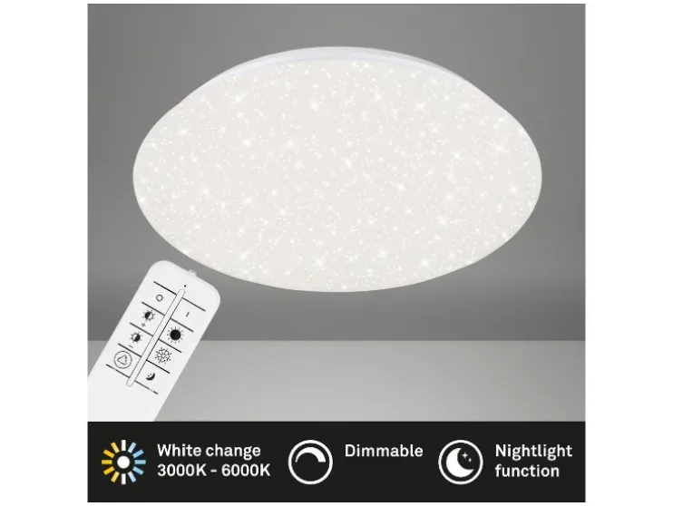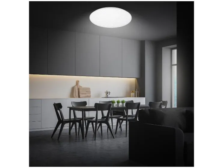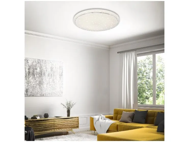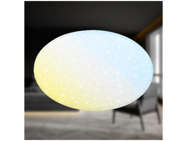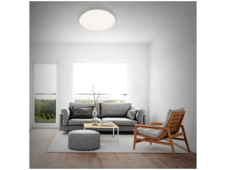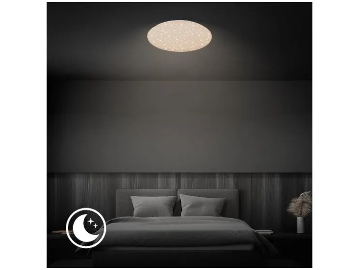 Deze LED-plafondlamp combineert krachtige verlichting met een subtiel sterreneffect. Ideaal voor wie sfeer en functionaliteit wil in één armatuur.