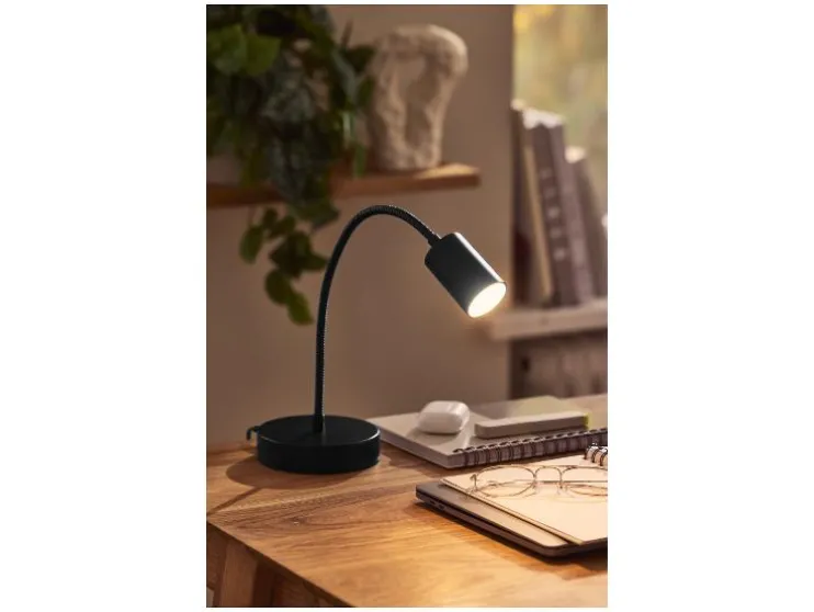 - Tafellamp met flexibele metalen arm en voet met meubelsparende onderlaag