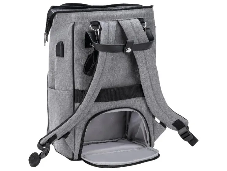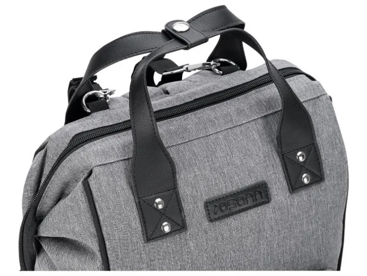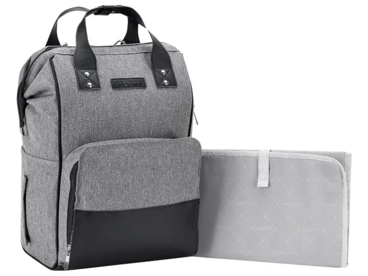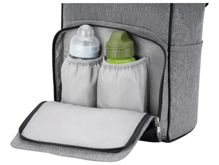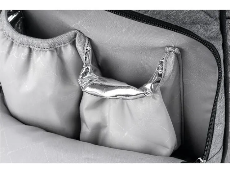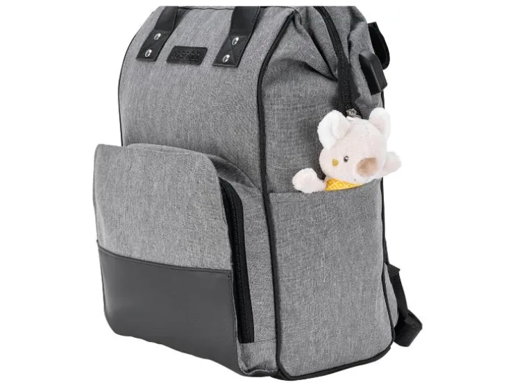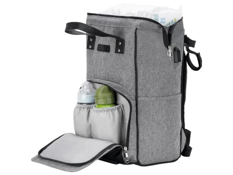 De combinatie van stijlvol kunstleer en waterafstotend materiaal maakt de luiertas niet alleen tot een echte blikvanger, maar ook behoorlijk praktisch. De vele binnen- en buitenzakken bieden voldoende ruimte voor baby’s flesje en de meegeleverde verschoningmat. Maar ook voor de ouders moet gezorgd worden: een geïntegreerde poort aan de zijzak maakt het opladen en het gelijktijdig gebruik van de telefoon mogelijk.