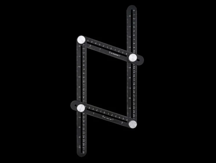 - Met 4 aanpasbare linialen – voor het opmeten van hoeken en vormen in bakstenen, stenen, tegels en alle materialen met hoekvormen