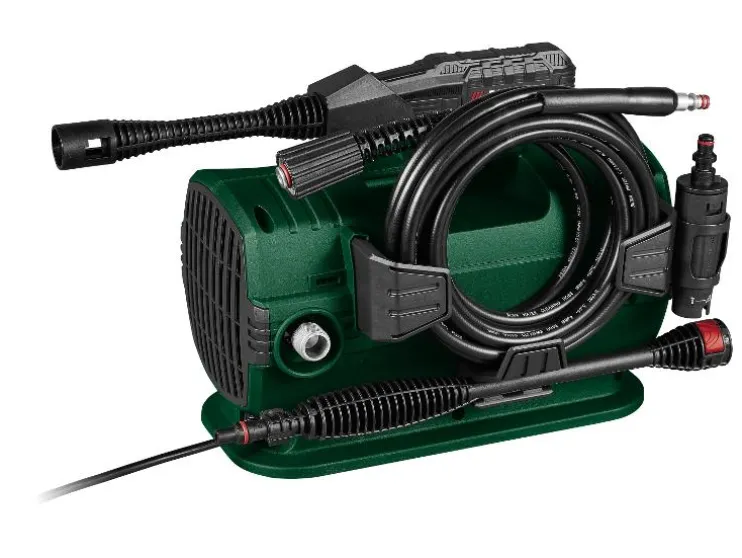 | Meegeleverde accessoires: | 1 standaard Vario-spuitmond, 1 lans, 1 pistoolgreep, 5 m Anti-Twist-hogendrukslang, 1 wateraansluiting met zeefinzet, 1 spuitmondreinigingsstift |