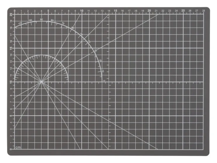 - 1 stevige snijmat (ca. 30 x 22 cm) met praktisch raster, dubbelzijdige schaal (cm/inch) en hulplijnen voor hoeken