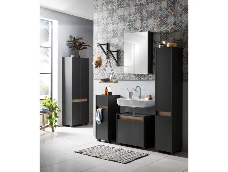 Geef je badkamer een moderne look met deze stijlvolle wastafelonderkast. Praktisch en elegant, perfect voor een strakke afwerking.