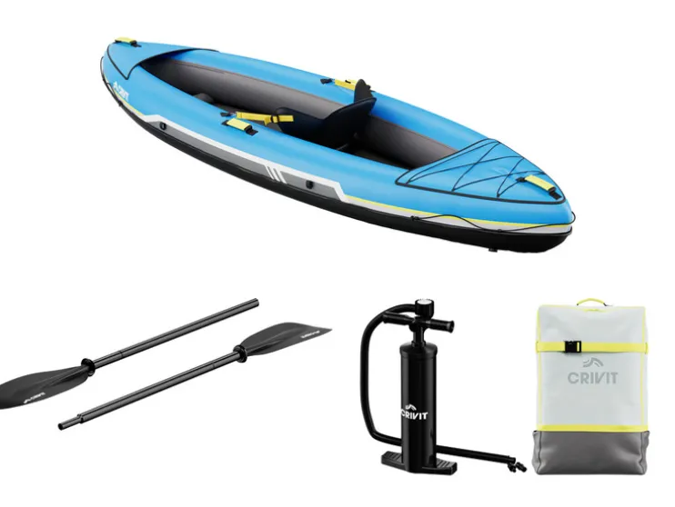 | Leveringsomvang: | Kajak, 1x dubbele peddel, dubbele slagpomp, rugzak, 2x vinnen, 1x kajakstoelen |