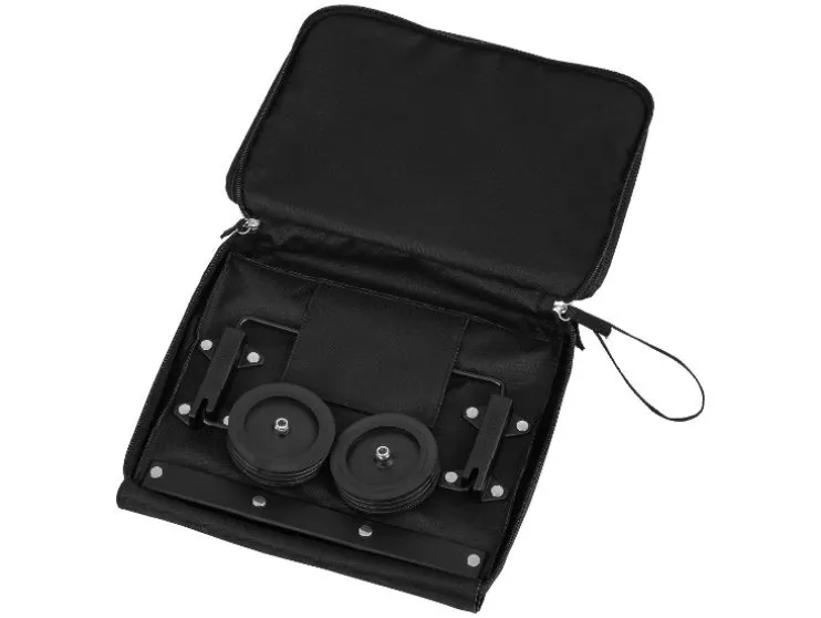 - Heeft een opvouwbare trolleytas met inklapbare wielen die in het voorvak passen