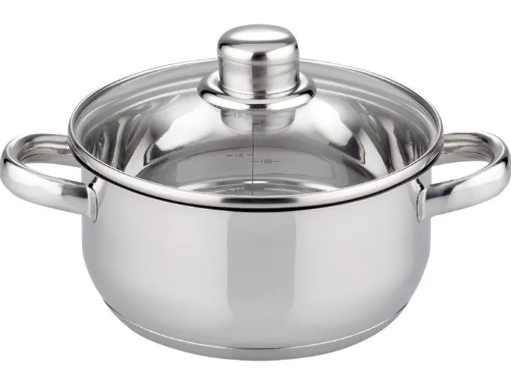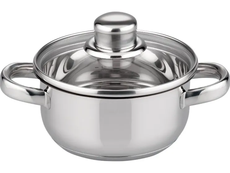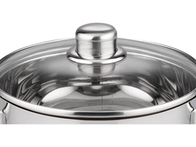 | Onderdelen: | 2 x braadpan met glazen deksel, 2 x vleespan met glazen deksel, 1 x steelpan met schenktuit |