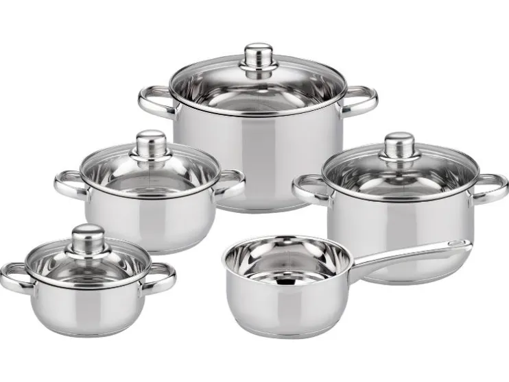 - Set van 9 delen: braadpannen, vleespannen en steelpan in verschillende maten