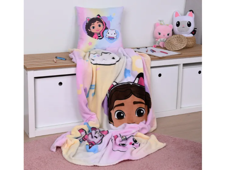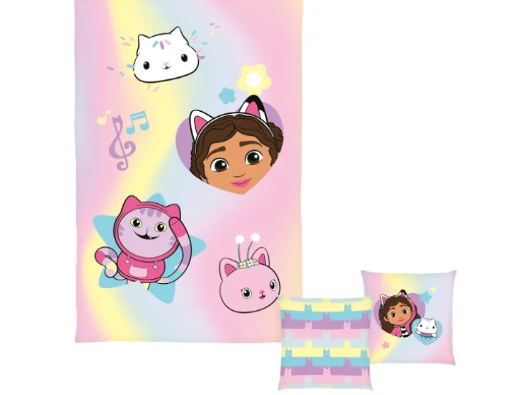 - Gabby´s Dollhouse knuffelset (plaid en kussen met omkeerbaar motief)