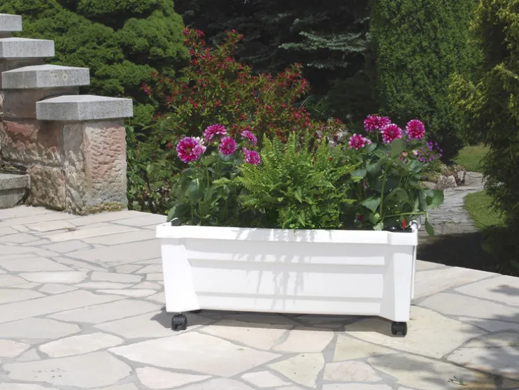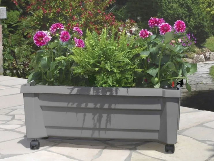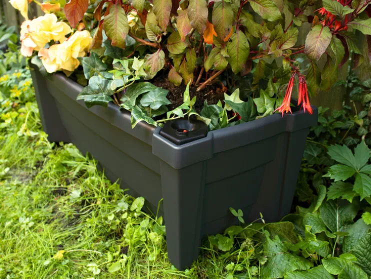 - Deze plantenbak met geïntegreerd irrigatiesysteem is weerbestendig en onderhoudsvriendelijk