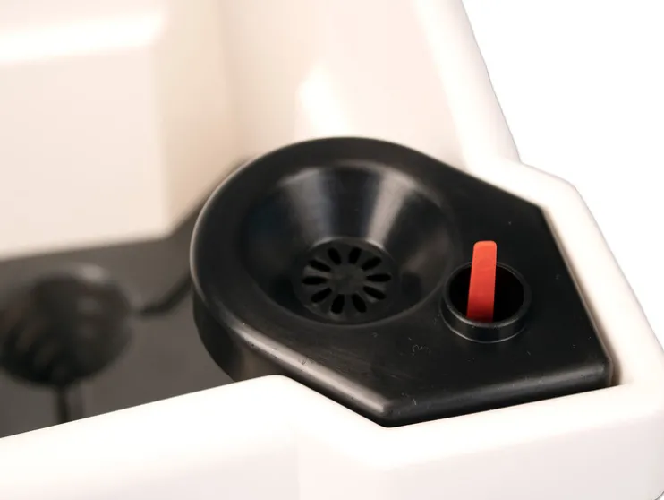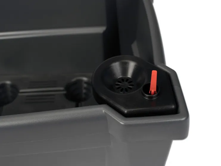 - De bak heeft een waterniveau-indicator en een waterreservoir van 8 liter