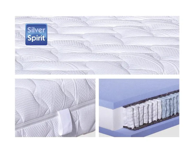 12 cm hoge 7-zone pocketveren kern met 1.000 veren op 100×200 cm en aan beide zijden Hyperflex-comfortschuim voor aan het lichaam aangepast slaapcomfort en dubbele stoffen hoes met SilverSpirit-afwerking. De totale hoogte is ca. 22 cm.