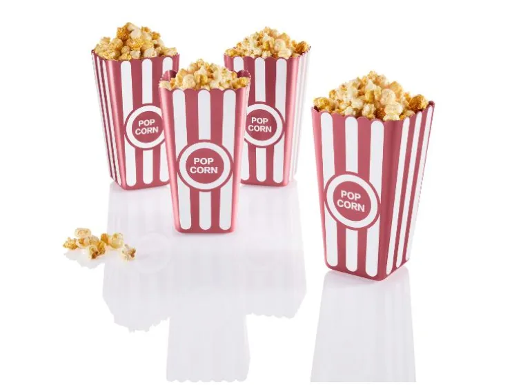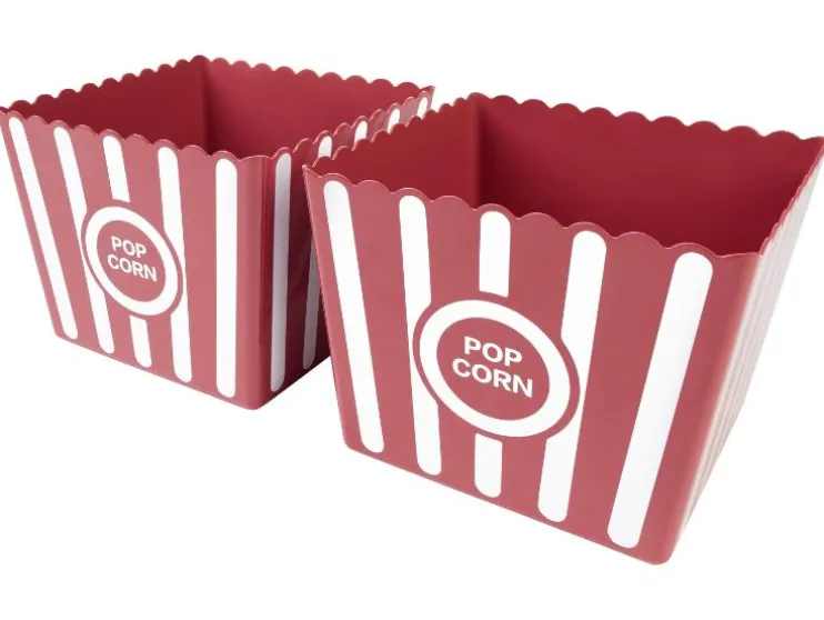 | Leveringsomvang: | Popcorn-bak-set: 2 popcorn-emmers Popcorn-bak-set: 4 popcorn-zakken Drinkbeker-set: 4 drinkbekers, 4 drinkrietjes, 4 deksels |