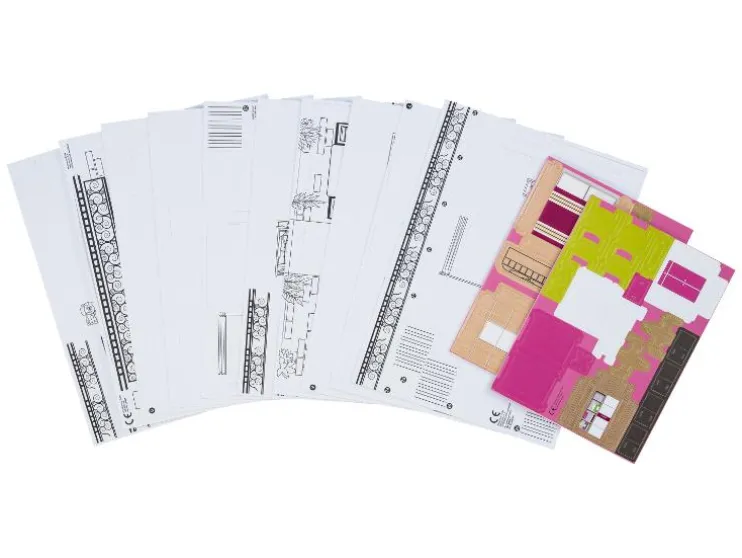 | Leveringsomvang: | Huis: 10x voorgestanste vellen, Meubels: 4x voorgestanste vellen, 1x bouwhandleiding |