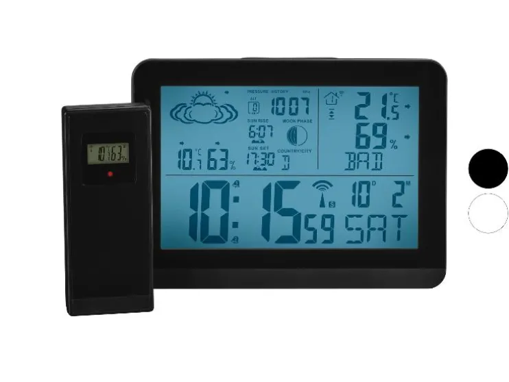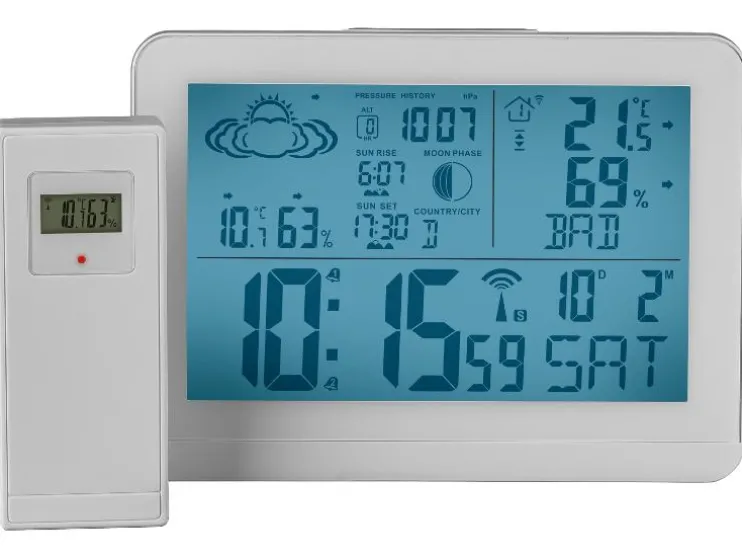 Blijf altijd op de hoogte van het weer. Dit weerstation toont temperatuur, luchtvochtigheid en weersvoorspelling, inclusief handige extra functies.