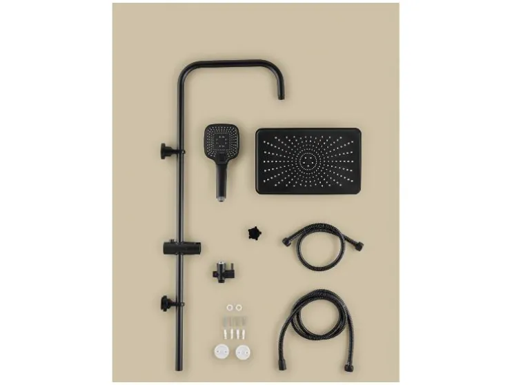 - Hoofddouche en handdouche van kunststof, stang en slangen van roestvrij staal