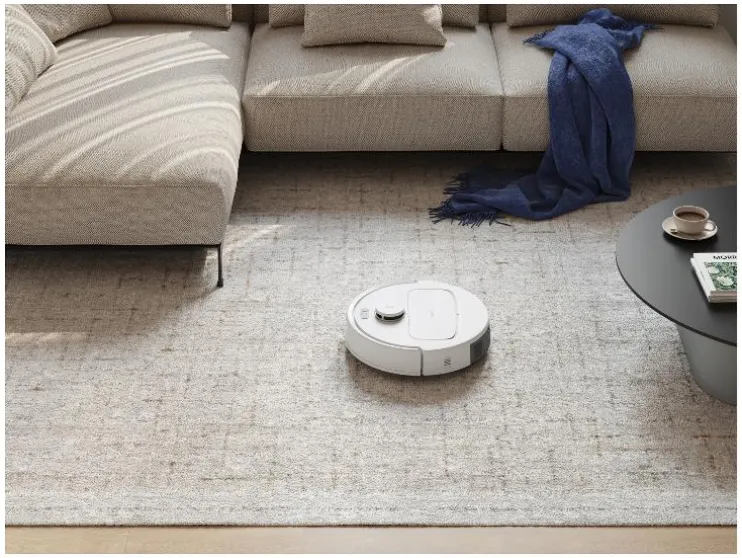 Witte dweilrobot met 10.000 Pa zuigkracht, TrueMapping navigatie voor een precieze kartering, ZeroTangle borstel met kammodule tegen haarverwikkelingen, OZMO-dweilsysteem met regelbare waterstroom en infraroodsensoren voor obstakeldetectie