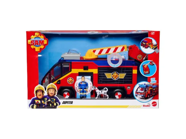 - Brandweerauto Jupiter: Op naar de volgende brandweeropdracht: Met Jupiter, de beroemde brandweerwagen uit Brandweerman Sam, is actievol rij- en speelplezier in de kinderkamer gegarandeerd!