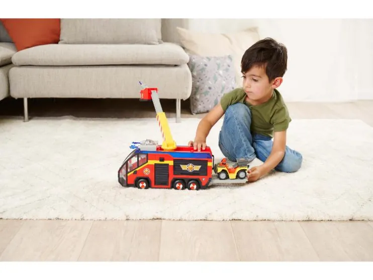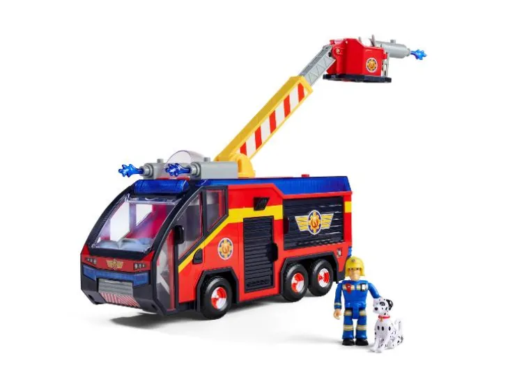 Op naar de volgende opdracht in Pontypandy! Met de beroemde brandweerwagen Jupiter uit de populaire kinderserie Brandweerman Sam is actievol speelplezier in je kinderkamer gegarandeerd. Het grote blusvoertuig is volledig functioneel en uitgerust met alles wat je als kleine hulpkracht nodig hebt. Gebruik de uitschuifbare ladder en de waterkanonnen om elke brand te blussen. De originele sirenes en de spectaculaire 360°-verlichting zorgen voor het perfecte speeldecor. Dankzij de meegeleverde batterijen kun je direct aan de slag met Brandweerman Sam en hond Schnuffel.