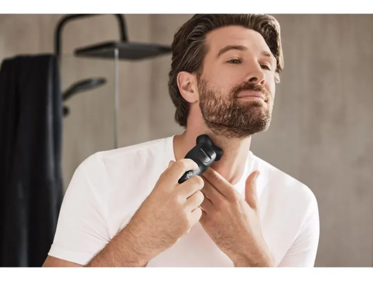 Scheer comfortabel en grondig, nat of droog. Dit roterende scheerapparaat past zich soepel aan je gezichtscontouren aan en is eenvoudig in gebruik.