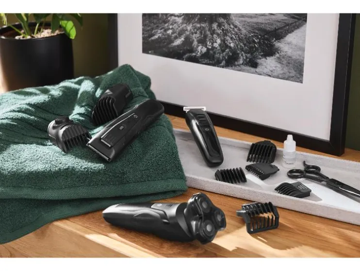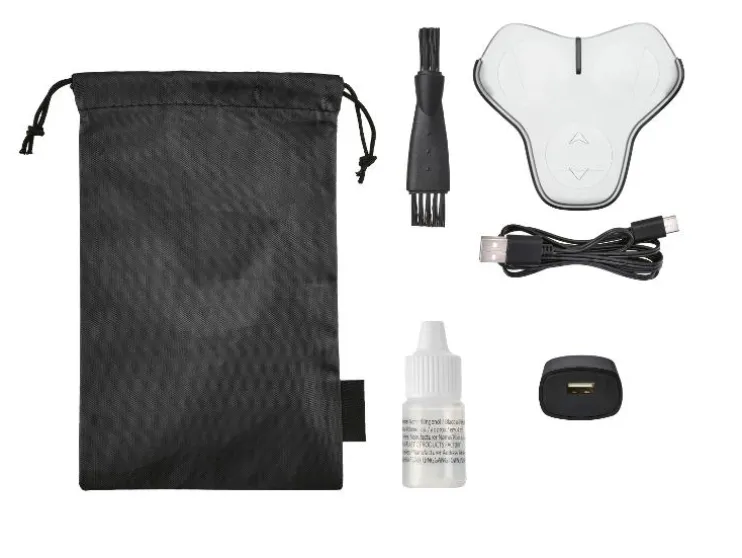 - Inclusief opbergtas, reinigingsborstel, beschermkap, USB-Type-C kabel, adapter en scheerolie