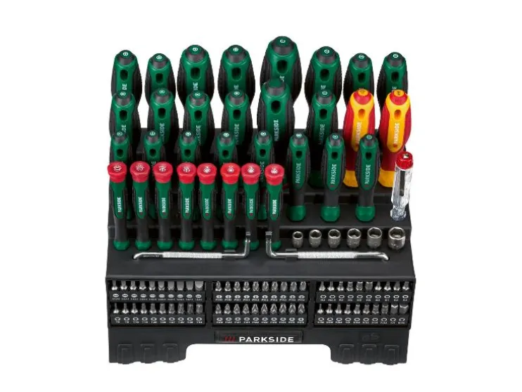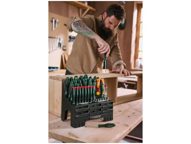 | Inhoud: | 60x bit, 8x precisieschroevendraaier, 21x schroevendraaier 2x 1000-V-schroevendraaier, 1x VDE-spanningstester met metalen clip, 1x ratelschroevendraaierhandgreep, 2x haakse schroevendraaier, 6x inbusdopsleutel |