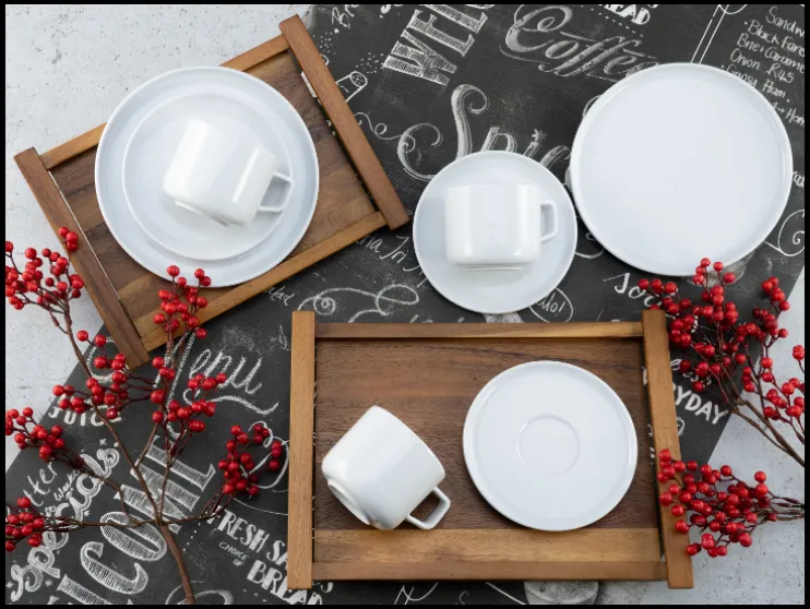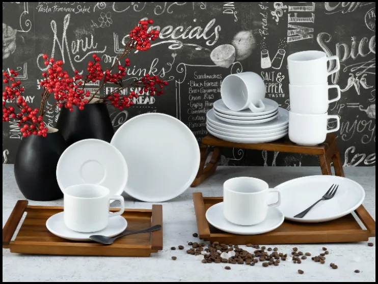 Dit servies is vaatwasser- en magnetronbestendig en ontworpen voor dagelijks gebruik. Dankzij de platte vormgeving is het ook ideaal voor het serveren van moderne gerechten.
